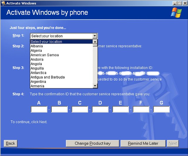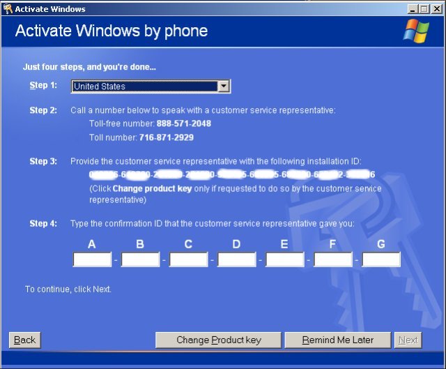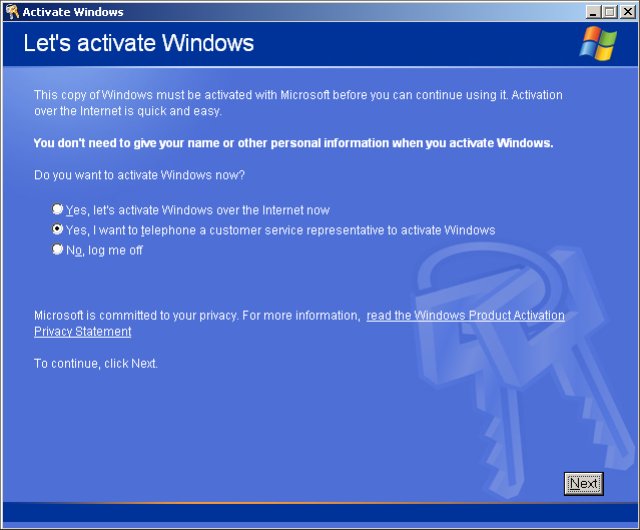 customer service rep to activate Windows ". Once selected click "Next" to continue.