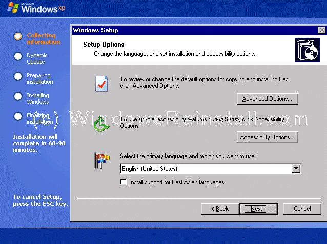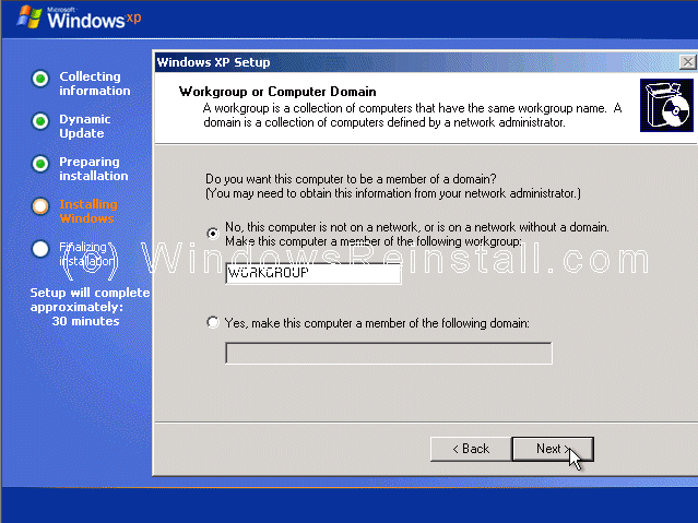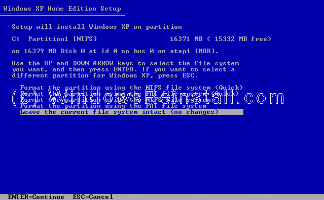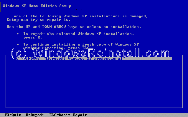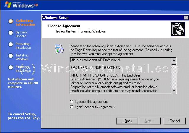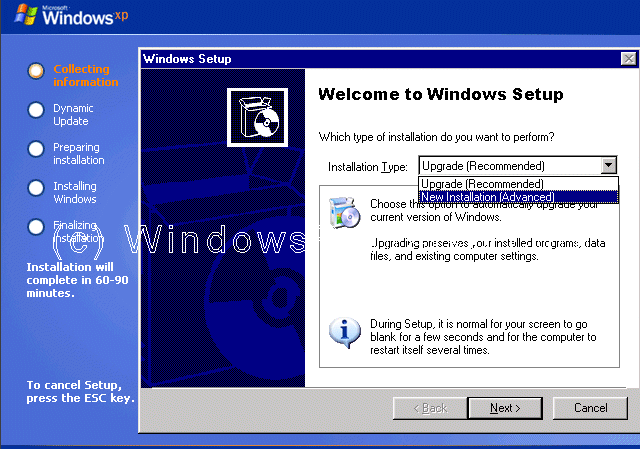 Microsoft's Windows XP Home Install step by step from previous operating system